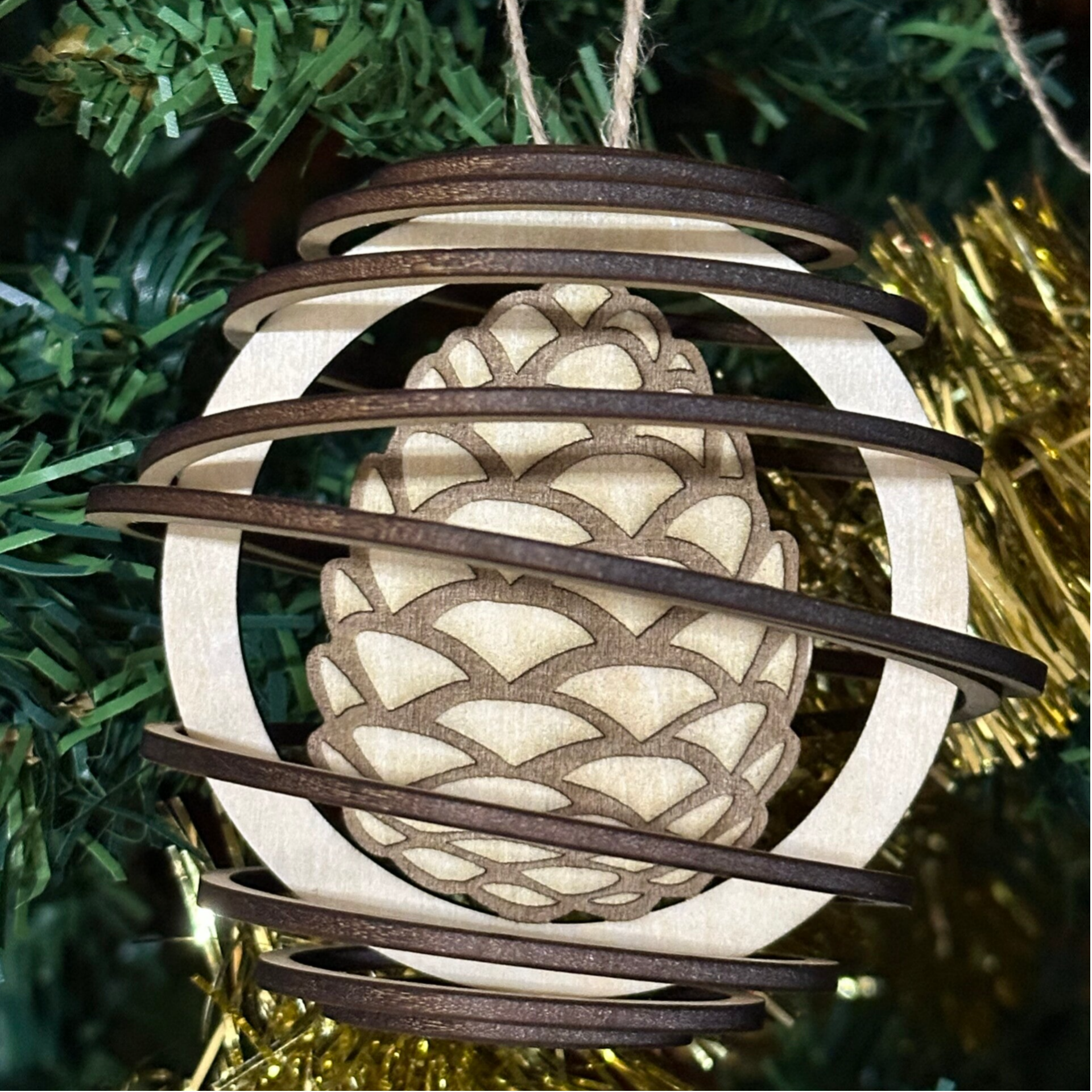 Boule de Noël spirales en bois, à personnaliser 🌟